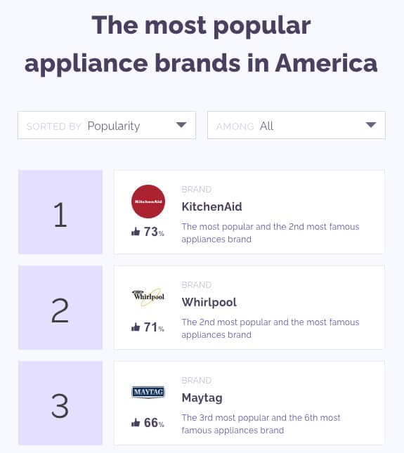 The YouGov article is just one example of many. If you spend time researching the best appliance brands, you will almost always find a Whirlpool brand near the top of the list. It may not always be #1, nor will it always be the flagship “Whirlpool” brand, but a brand in its portfolio is almost always ranked highly when considering “best appliances”.