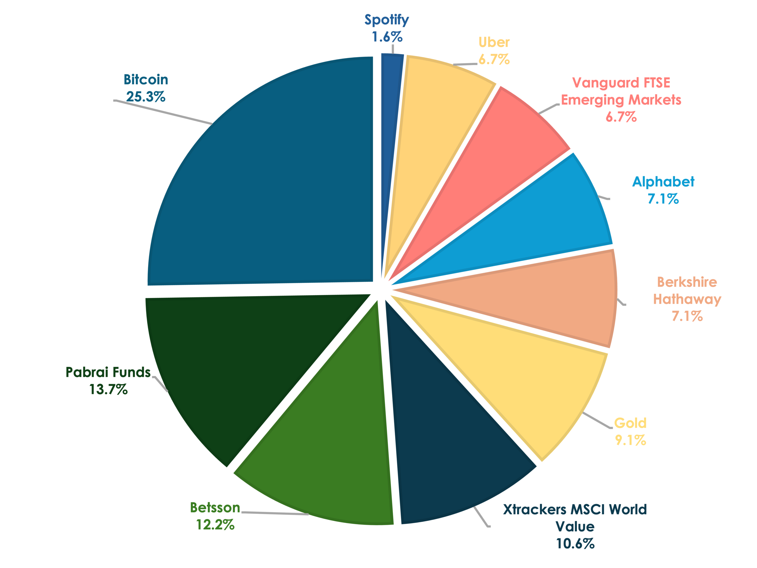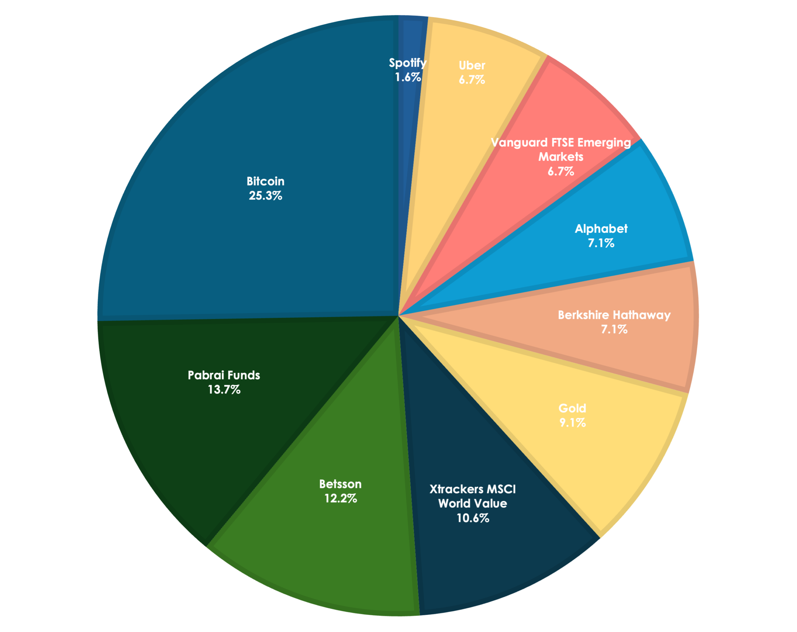Bitcoin | Pabrai Funds | Berkshire Hathaway | Physical Gold | Xtracker World Value and Vanguard FTSE Emerging Markets